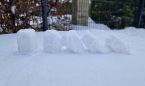 Infolge von Aufträgen aus dem Kunstunterricht gestalteten die Schülerinnen und Schüler der Klassen 5c, 6b und 8b wahre Kunstwerke aus Schnee. Folgend eine kleine Auswahl: