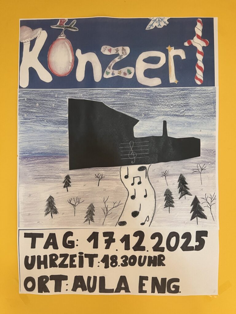 Unterstützung gab es von der Fachschaft Kunst, die wunderbare Plakate zum Weihnachtskonzert entwarf – herzlichen Dank dafür!