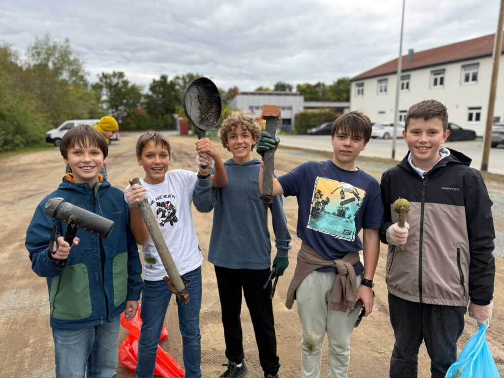 Am Donnerstag, den 9. Oktober 2025, waren wir, die Klassen 6EGT und 7EGT, im Rahmen der Aktion „Saubere Stadt, sauberer Wald, saubere Gewässer“ in der Nähe vom Emmy-Noether-Gymnasium Müll sammeln. Trotz des nicht so guten Wetters haben wir ziemlich viel gefunden, unter anderem Batterien, eine Pfanne und eine Wurstdose, die die Jungs mit Erfolg geöffnet haben. Was wir alles gefunden haben, war unglaublich.