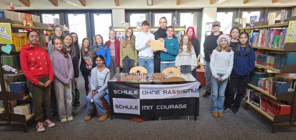 Damit verpflichten wir uns, Verantwortung für das Klima an unserer Schule und unser Umfeld zu übernehmen und Diskriminierungen jeglicher Art entgegenzutreten. Nach einer eindrucksvollen Rede von StR Axel Loyens, dem Initiator des Projekts an unserer Schule (zusammen mit StR Martin Starz), die deutlich machte, wie präsent rechtsextremes Gedankengut in unserer Gesellschaft leider immer noch ist, gaben zwei Schüler aus der Arbeitsgruppe „SOR“, Franzi Furtwengler und Konstantin Neubert, einen Überblick über bereits im letzten Jahr an unserer Schule durchgeführte Aktionen.