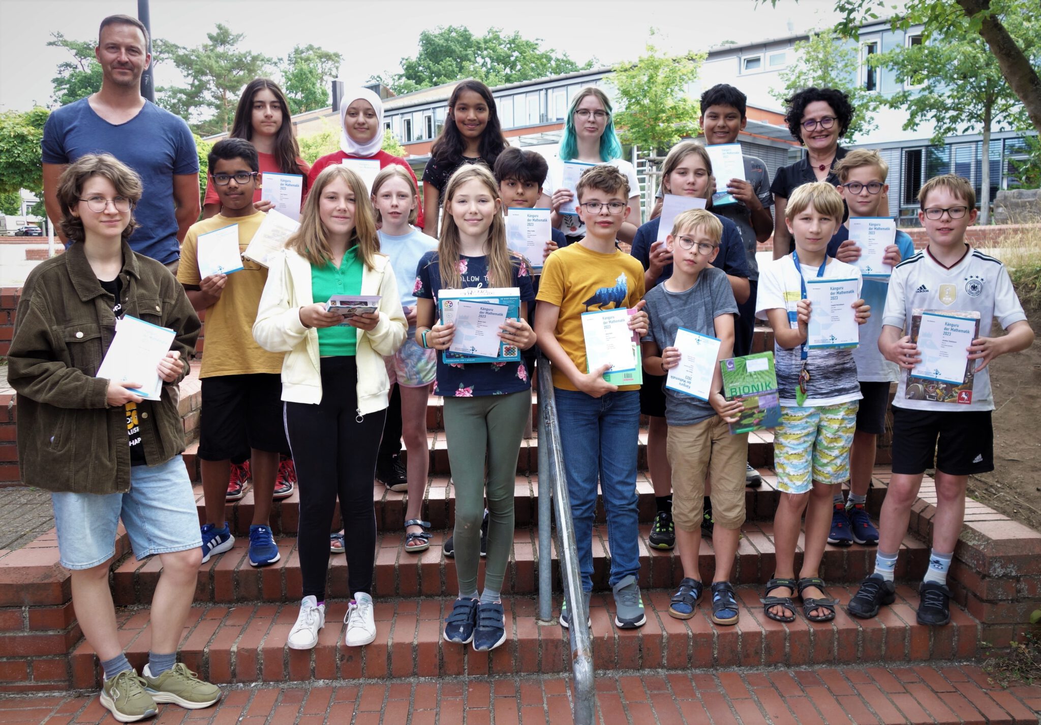 Dritte Preise gingen an Divyesh Bhattacharyya (5a), Noah Pfann (5b), Rosa Neumann (5c), Dante Dionis (5d), Lilas Muraai, Ioana Popescu (6a), Niklas Kindler, Sanjana Shenoy (6d), Aryan Agarwal (7d), Miriam Kauffmann (8a) und Nele Jensen (10a).