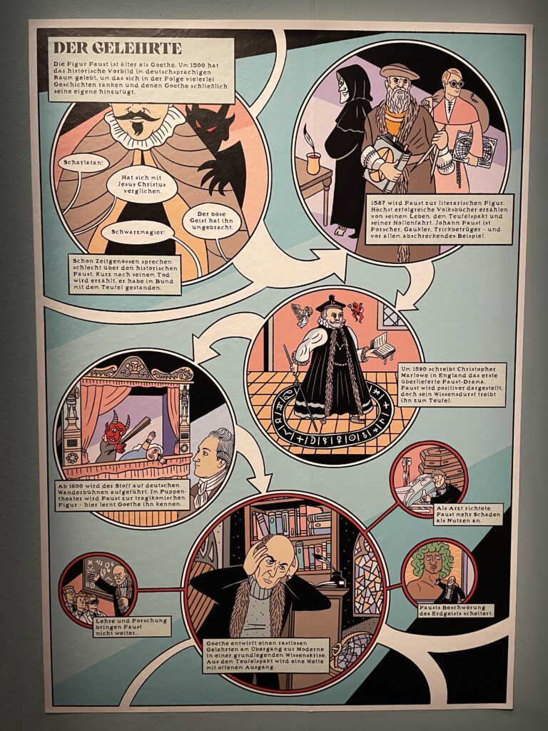 Nach anschließender Mittagspause besuchte der Kurs nun Schillers Wohnhaus, und die daran angrenzende Ausstellung zu Goethes „Faust“. Dabei konnte man selbst auch aktiv werden und etwa eigene Zitate bilden oder sich bekannte Zitate aus den Werken anschauen. Da Faust auch vorher im Unterricht bei der gesamten Stufe besprochen wurde, war dies der ideale Ort, um einige Diskussionen über die teils doch vielschichtige oder auch problematische Handlung zu führen.